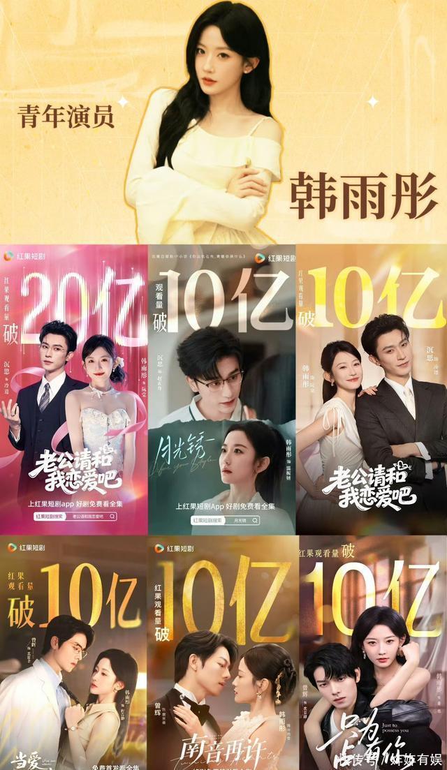 五、韩雨彤(抖音粉丝186.9万) 甜宠赛道的“黄金搭档”,CP营销的受益者 韩雨彤是短剧圈的“甜宠女王”,也是CP营销的最大受益者,她和曾辉组成的“落日雨晖”CP,成了短剧圈的顶流组合。两人合作超12部作品,俊男靓女的搭配加上自然的默契,让他们成了观众最爱的“荧幕情侣”,韩雨彤也借此成功跻身2025短剧顶流行列。